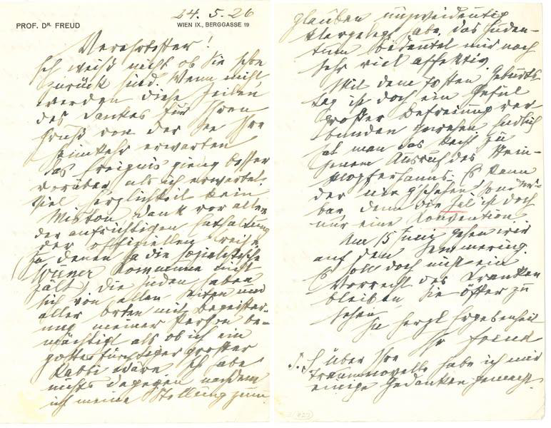 Letter from Sigmund Freud to Arthur Schnitzler, May 14, 1922